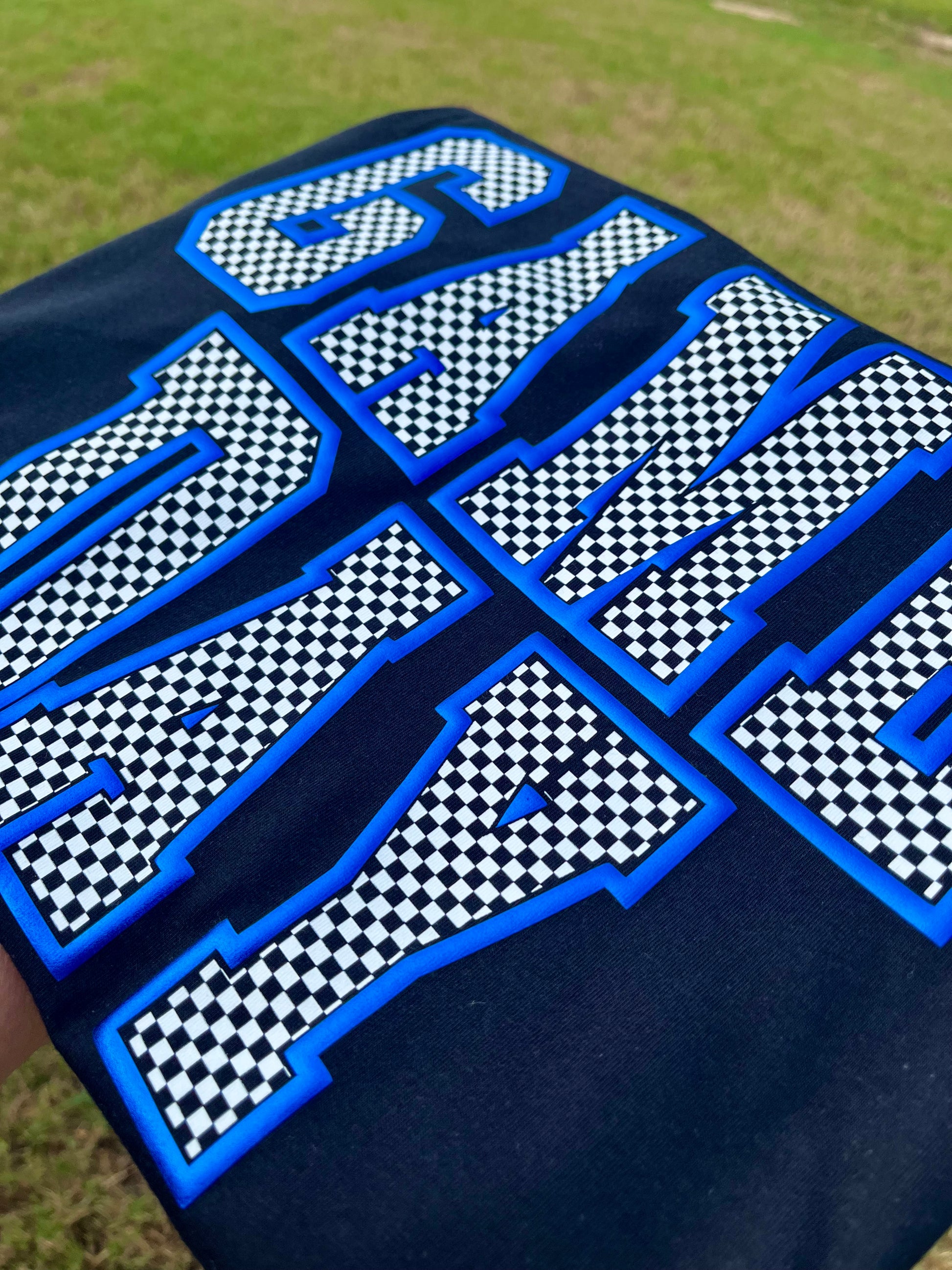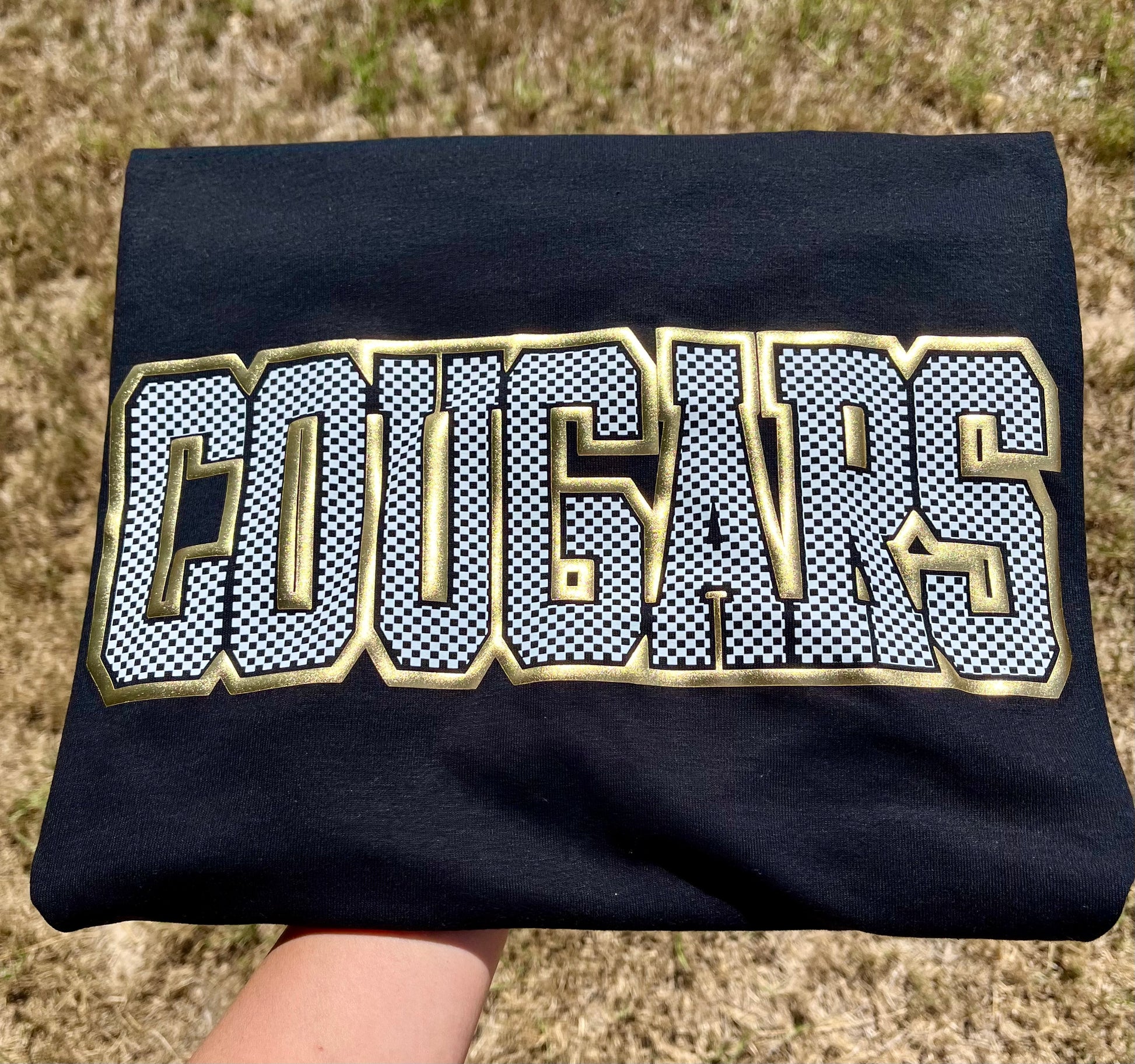 CHECKERED METALLIC PUFF GAME DAY